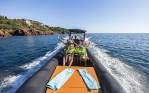Nos excursions semi-rigides dans l’Estérel partent chaque matin. Pour une journée vers Saint-Tropez, jusqu’à 12 personnes sur la même flotte.